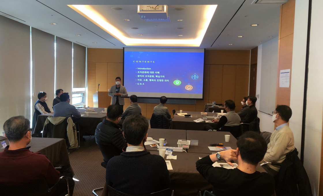 핵심 가치가 살아 숨 쉬는 조직으로의 변화를 위해 핵심 가치 및 경영철학에 대해 다시 한번 명확히 이해하고, 이를 어떻게 해당 조직의 업무에 반영할 것인지 심도 있는 고민을 통해 구체적인 Action Item을 도출한 의미 있는 시간을 가졌다.